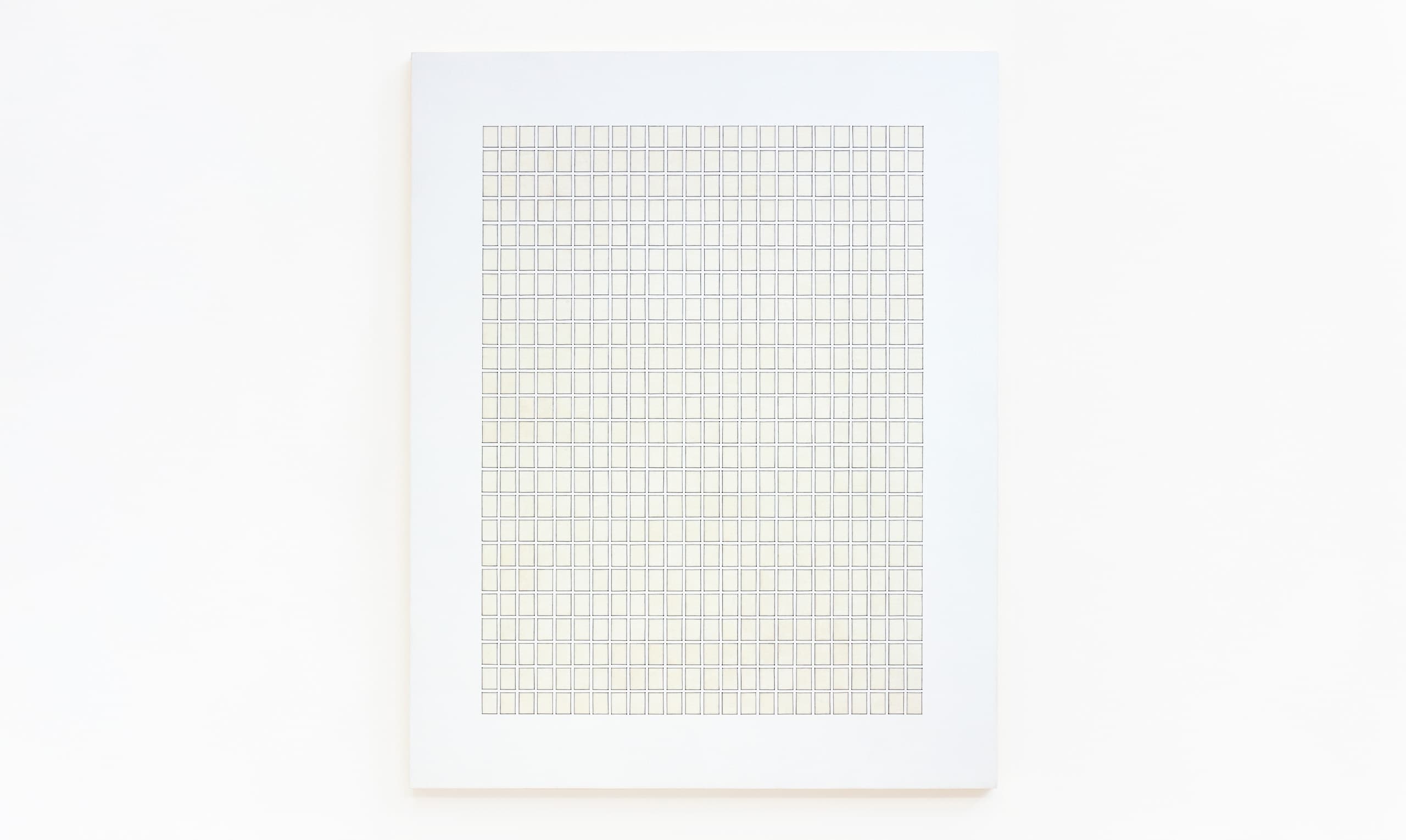 FOR AGNES (2003) | Wood, thread, and acrylic paint, 30.25 x 23.75 x 1.25 in (76.8 x 60.3 x 3.2 cm)