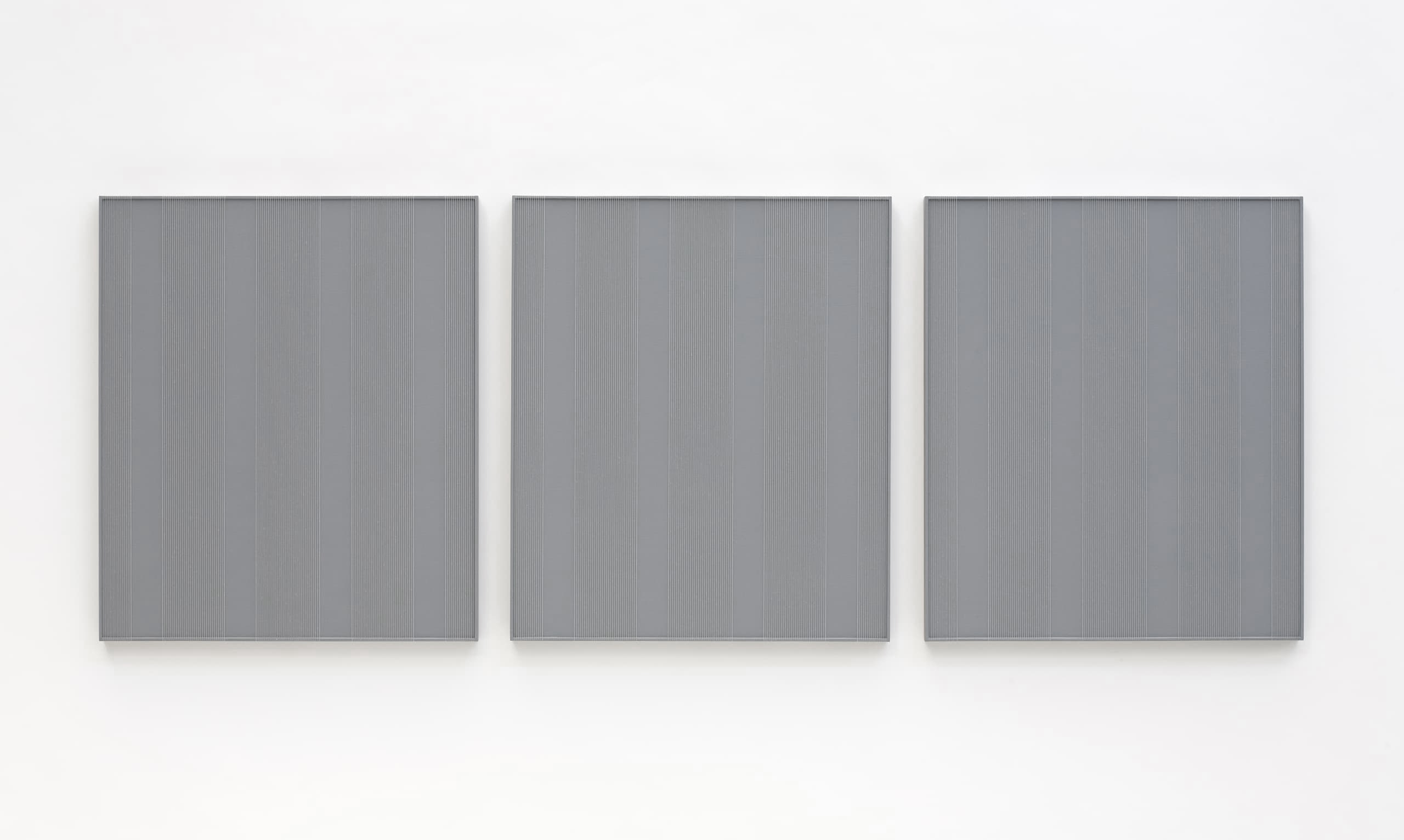 THREAD PAINTING #12 (2003) | Wood, thread, and acrylic paint, 14 x 11.75 x 1 in (35.6 x 29.8 x 2.5 cm) each panel